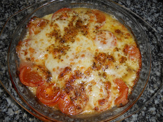Ahora metemos la fuente en el horno y esperamos a que el queso se funda y se gratine un poco por encima, y ya estaría listo para comer. Lo podemos acompañar con pan, con picatostes..... Espero que os guste.